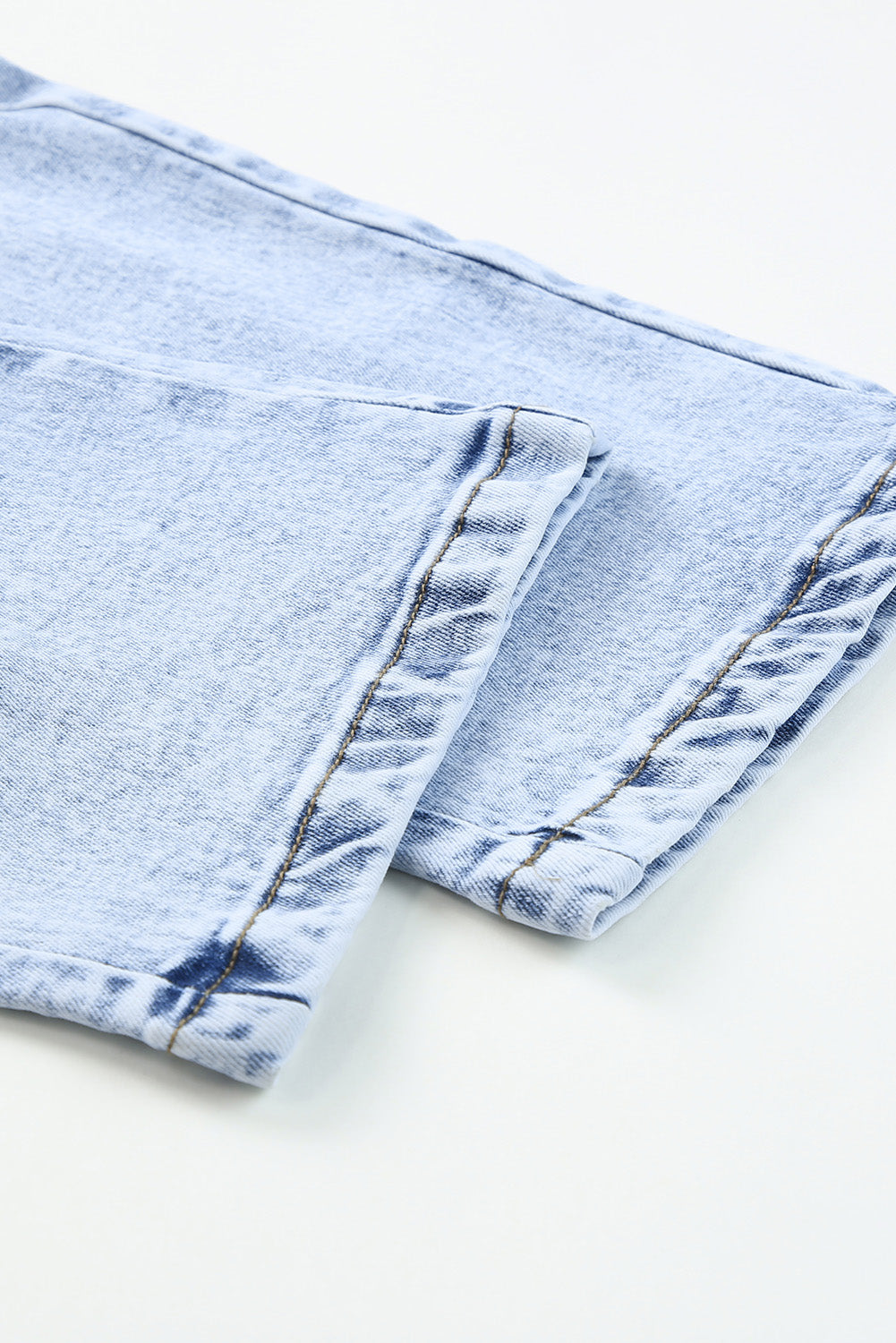 Sky Blue High Waist Wide Leg Cargo Jeans