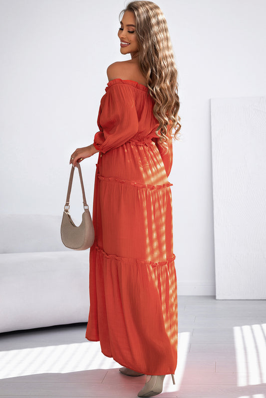 แม็กซี่เดรสแขนกุดทรงบอลลูนปิดไหล่สีส้ม