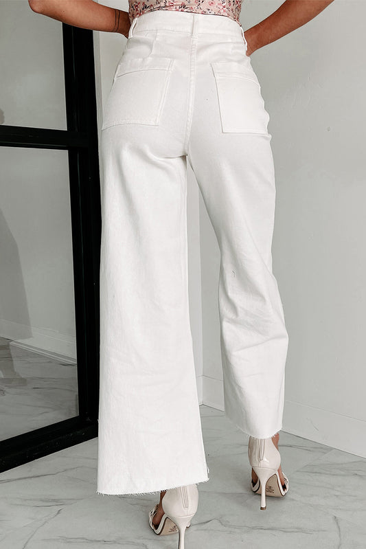 ขายหมดแล้วกางเกงยีนส์ Solid Raw Hem ขากว้างสีขาว