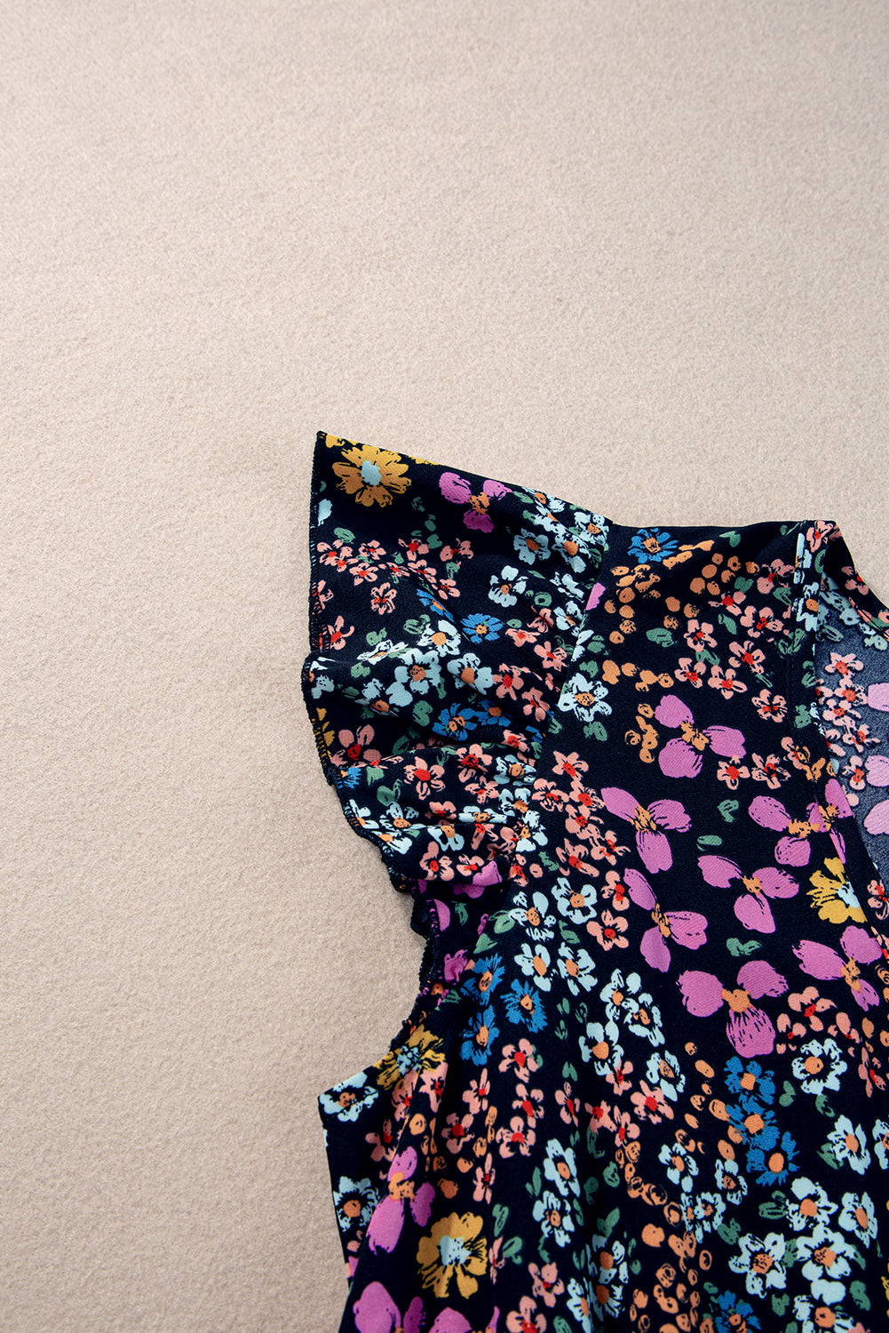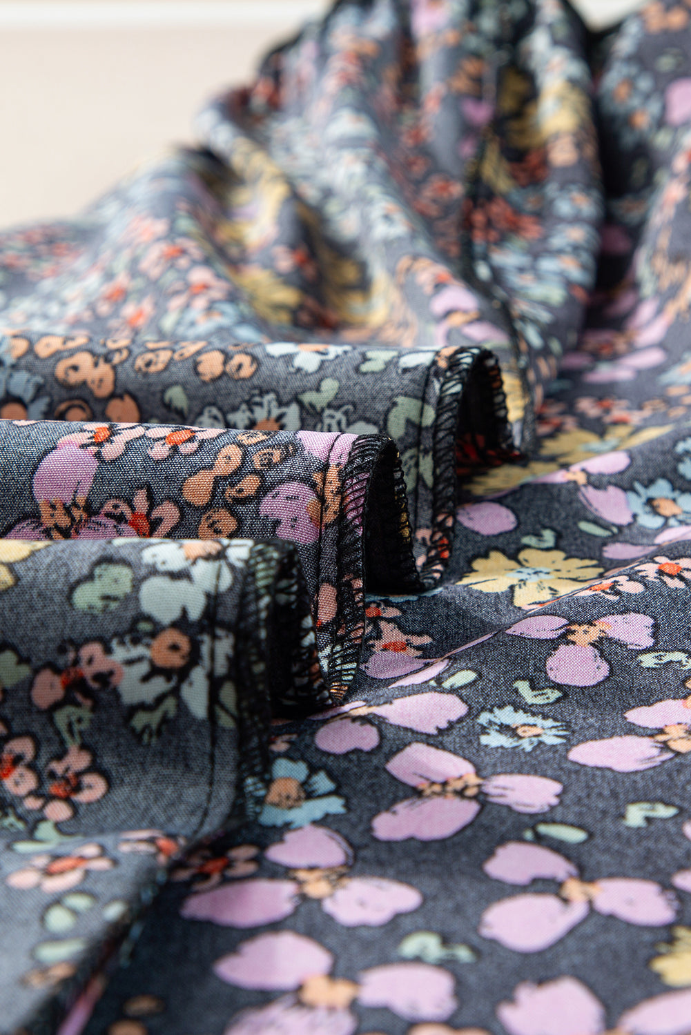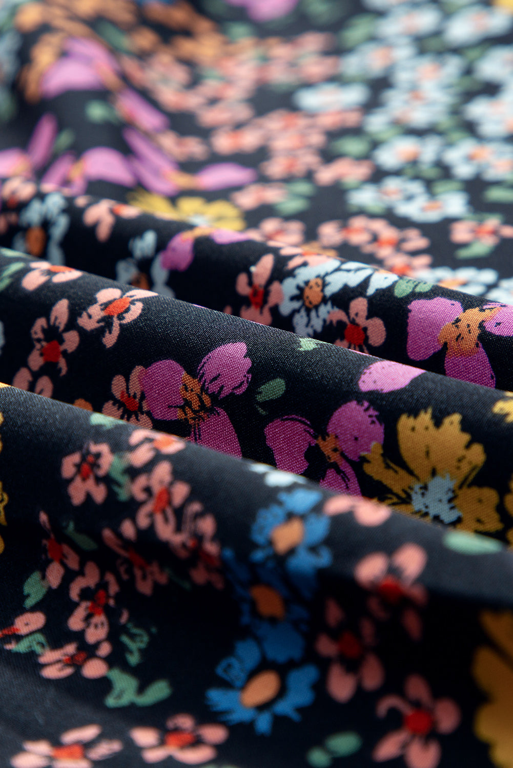 ชุดเดรส Midi Dress คอวีแขนยาวลายดอกไม้สีดำ