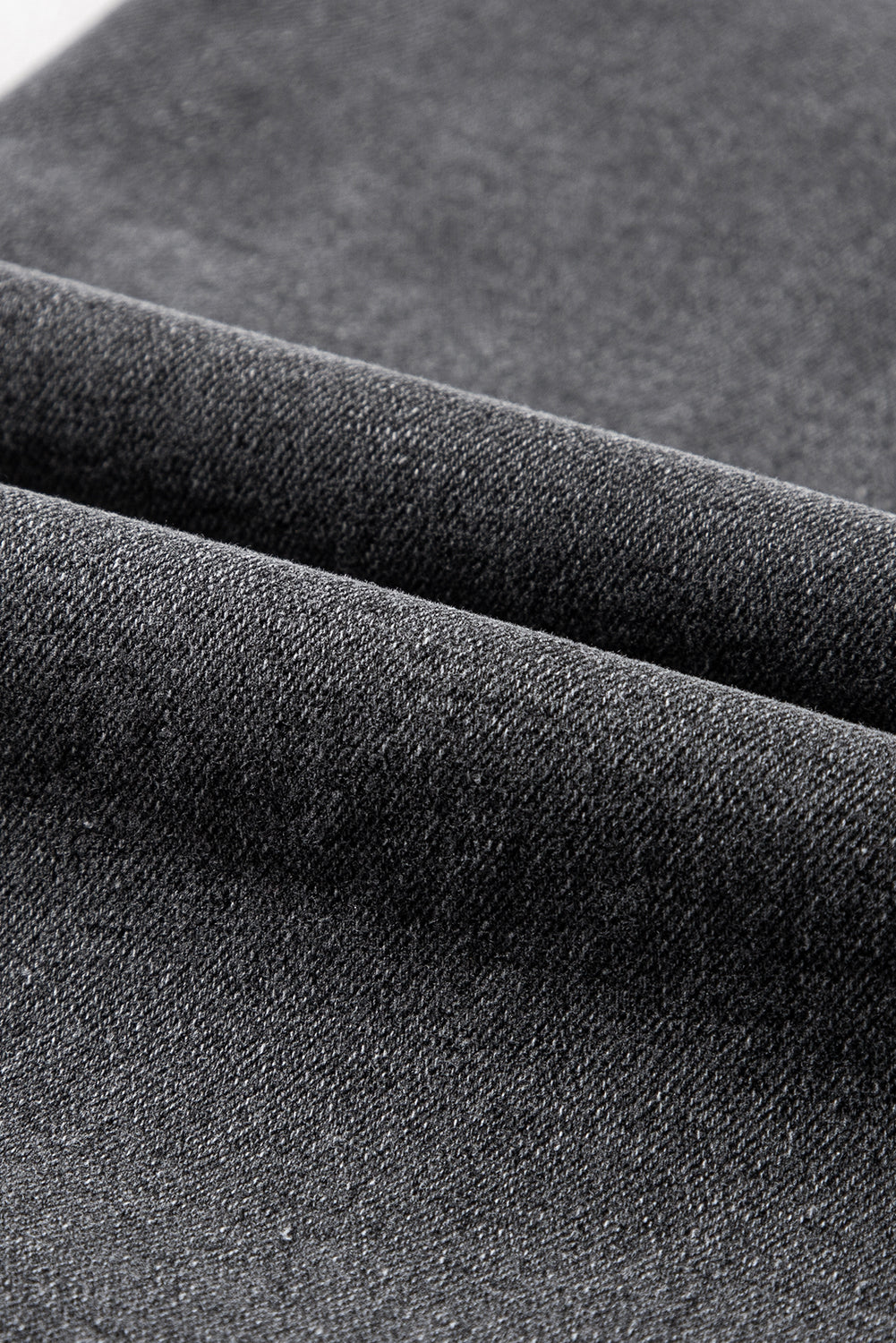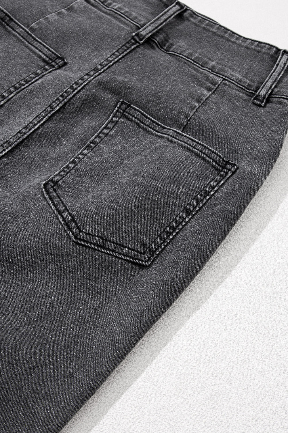 กระโปรงยีนส์ Midi ติดกระดุมด้านข้างขอบดิบสีดำ
