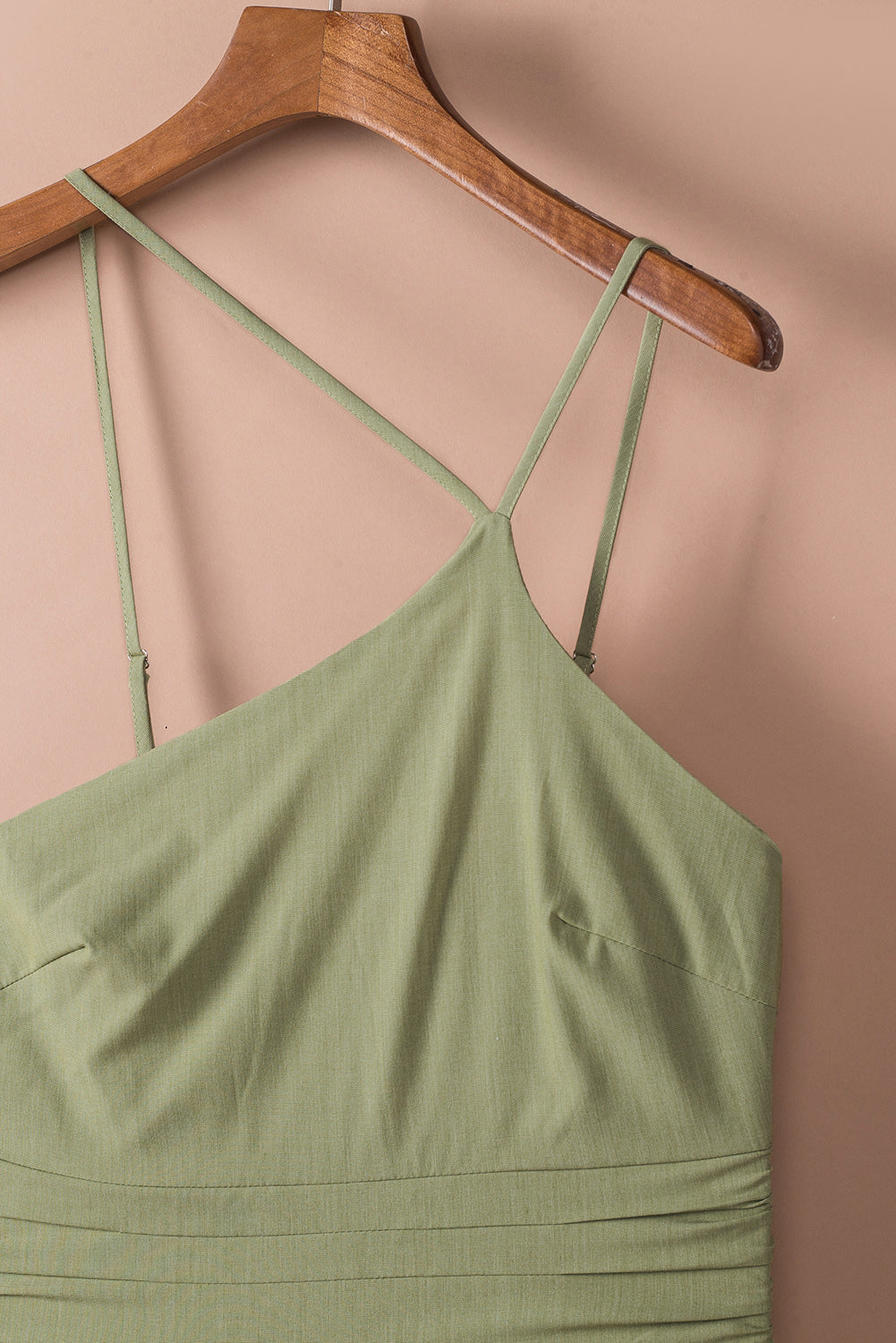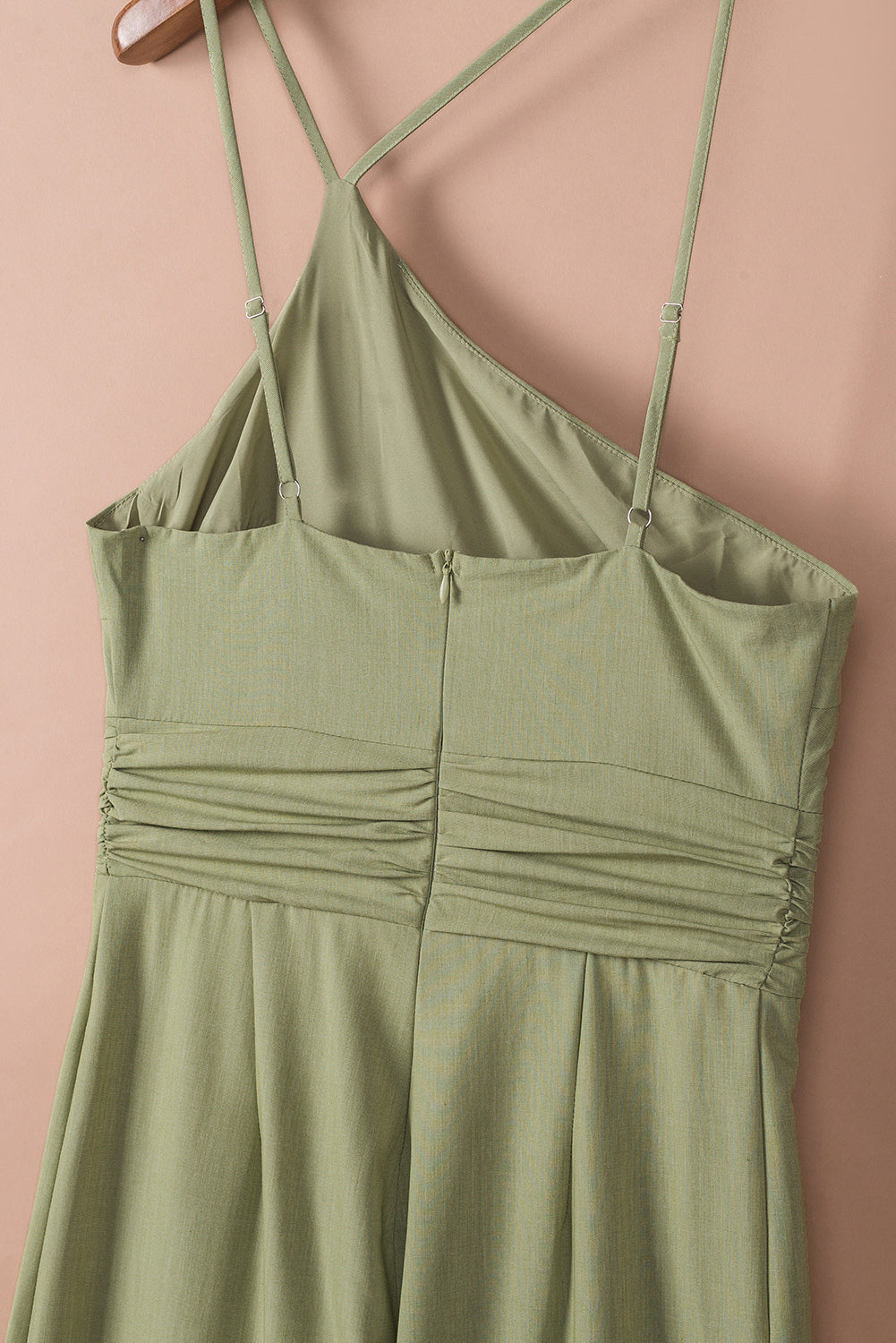 จั๊มสูทขากว้างไหล่เดียวสีเขียว