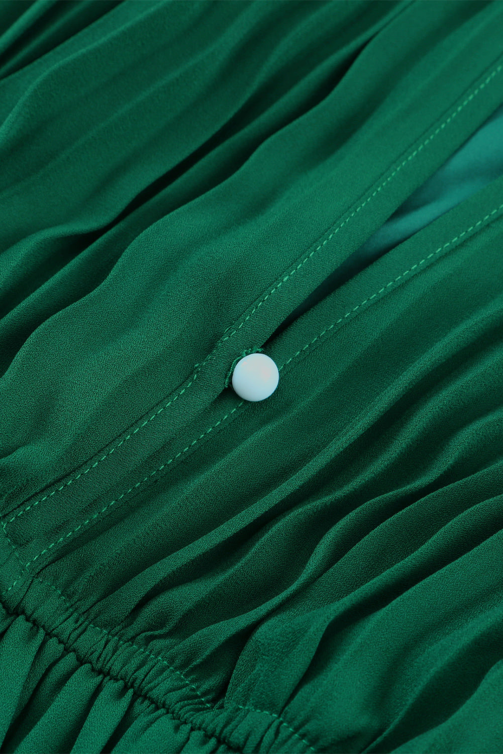 จั๊มสูทขากว้าง Halter Neck สีเขียวพร้อมเข็มขัด