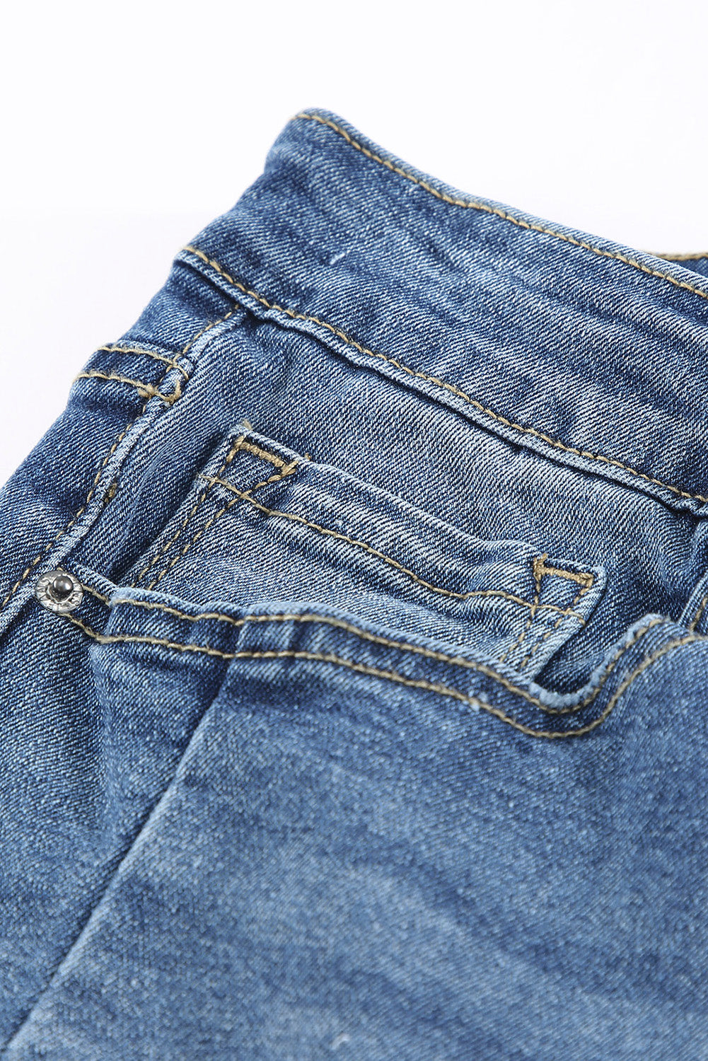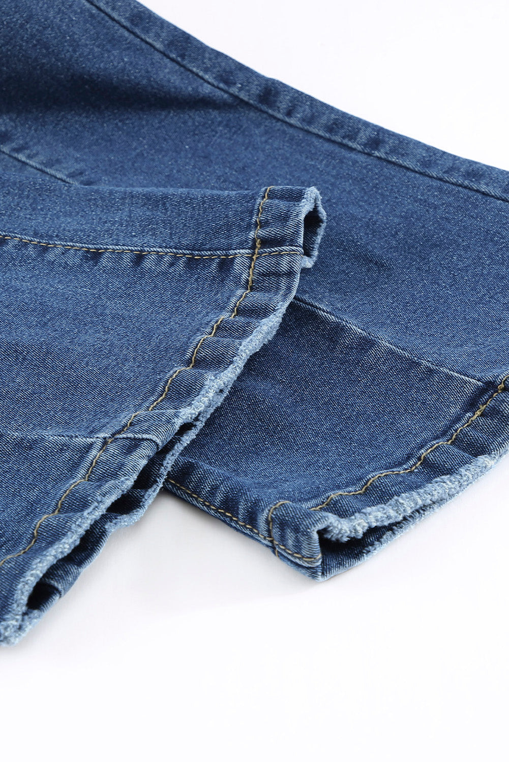 กางเกงยีนส์ขาบานเอวสูงพร้อมกระเป๋า