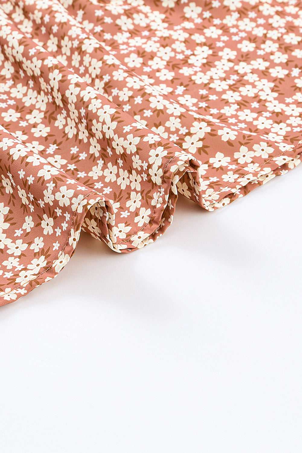 Khaki Thin Straps Smocked Bodice Wide Leg Floral Jumpsuit