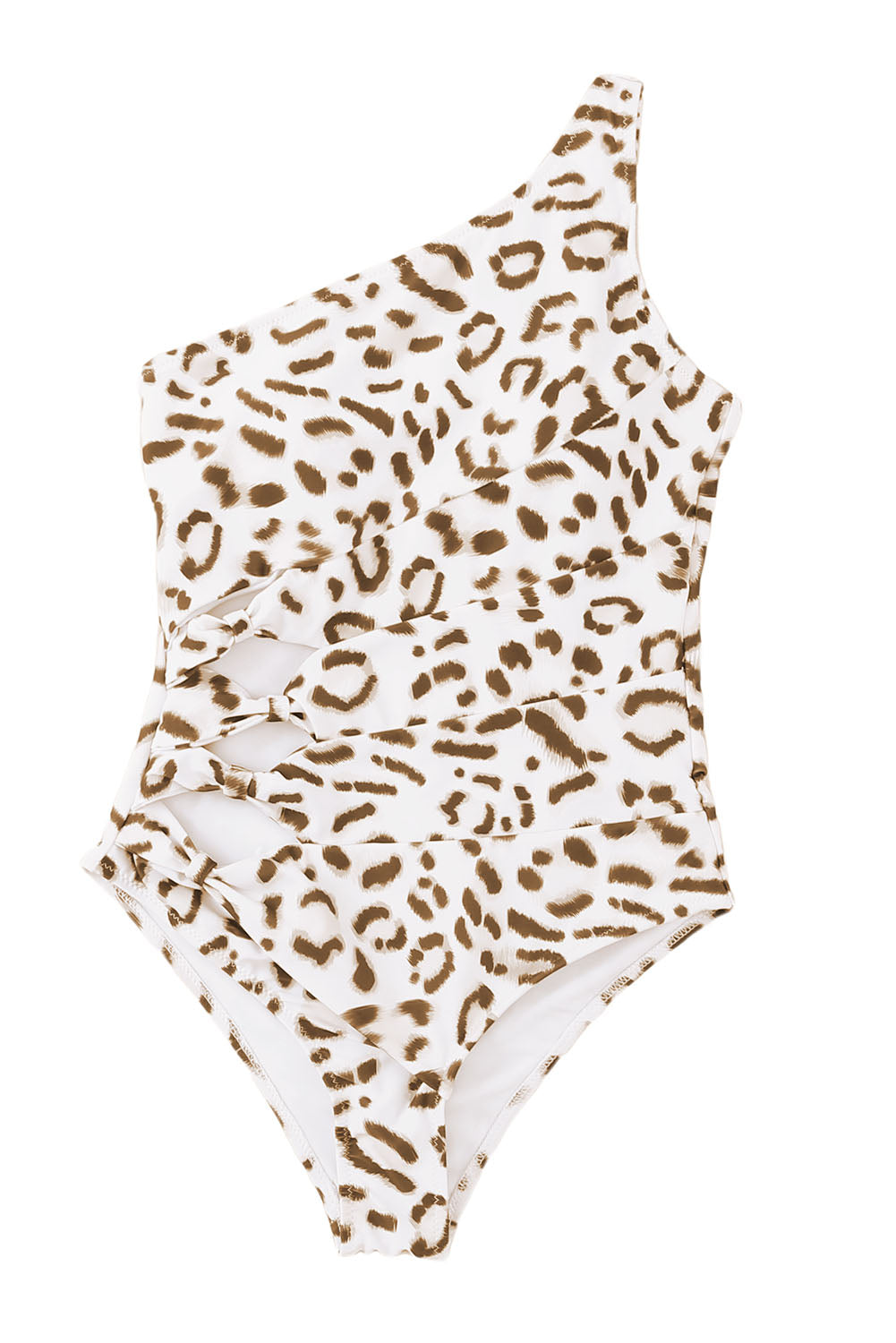 ชุดว่ายน้ำวันพีซแบบไหล่เดียวพิมพ์ลายเสือดาว
