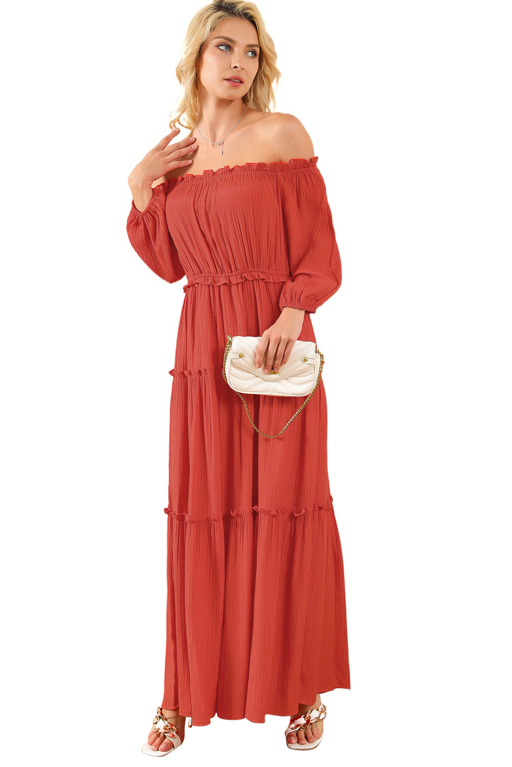 แม็กซี่เดรสแขนกุดทรงบอลลูนปิดไหล่สีส้ม