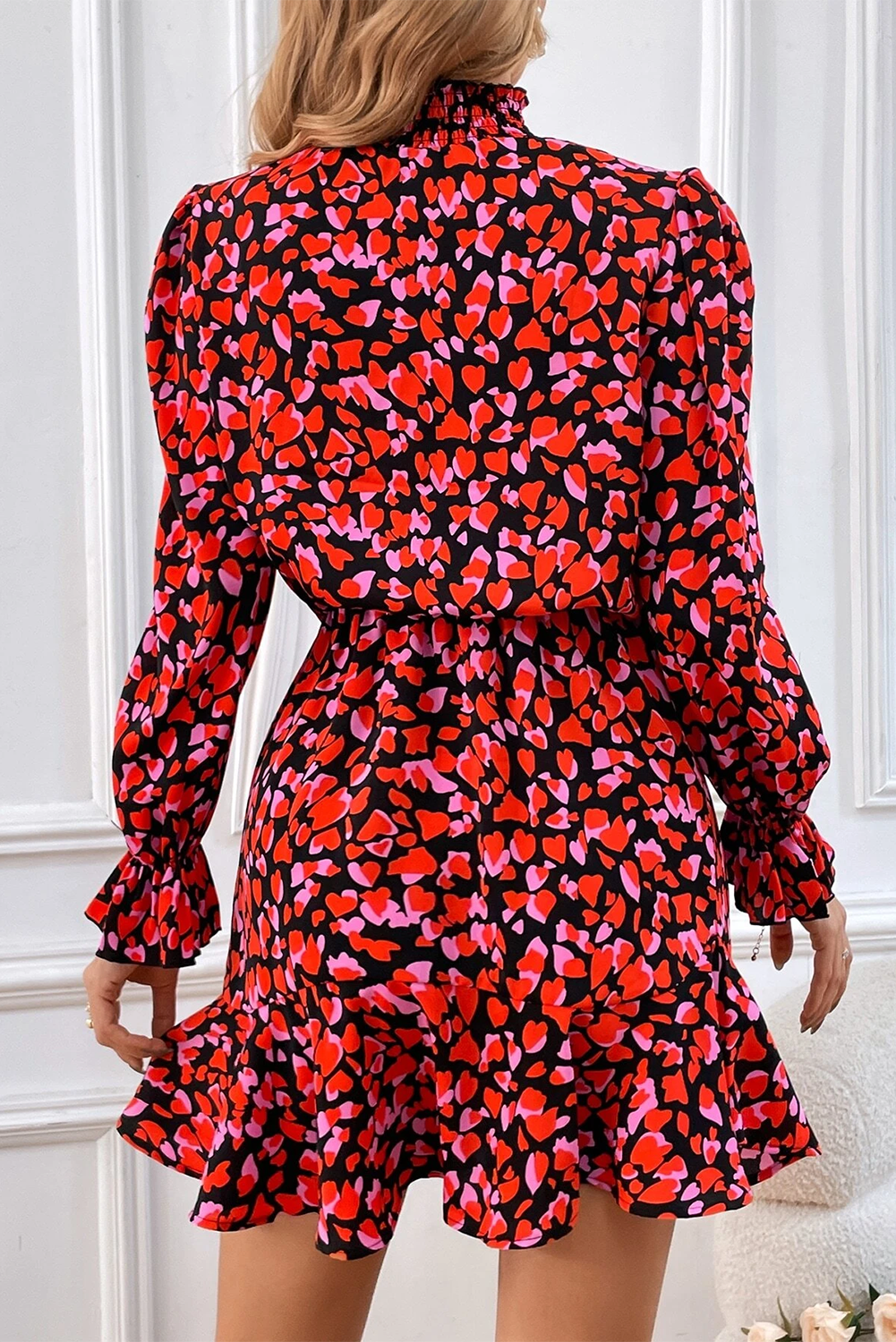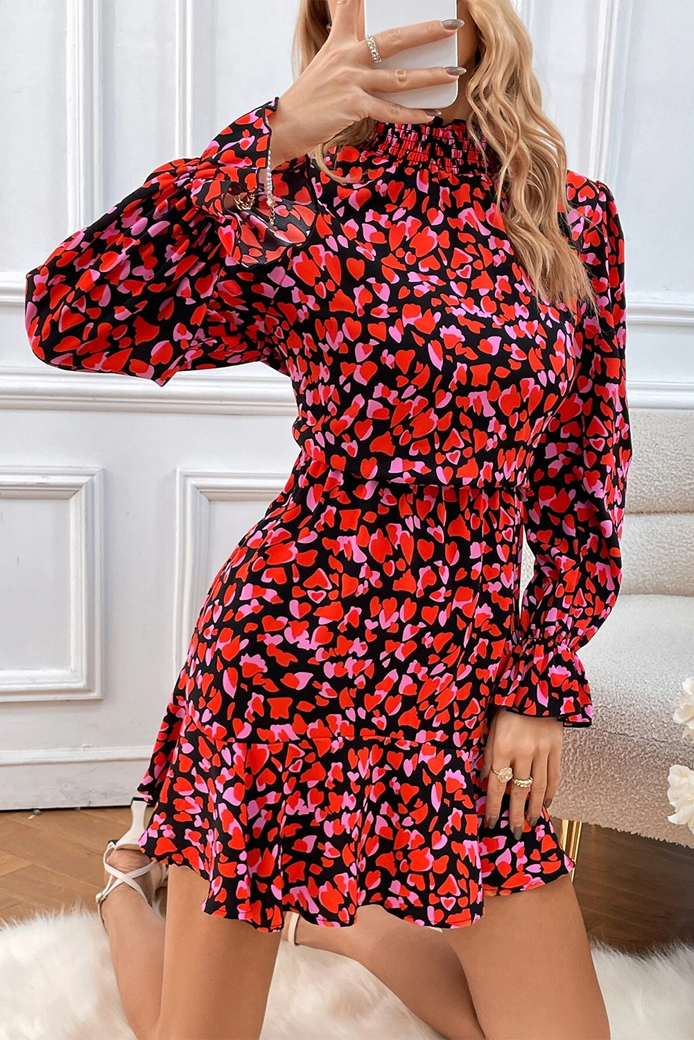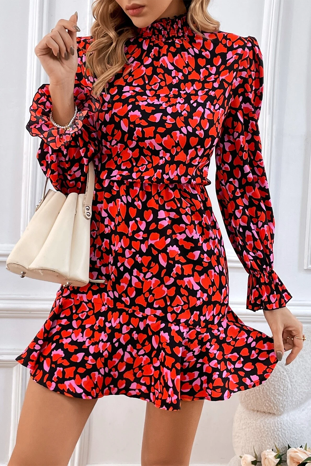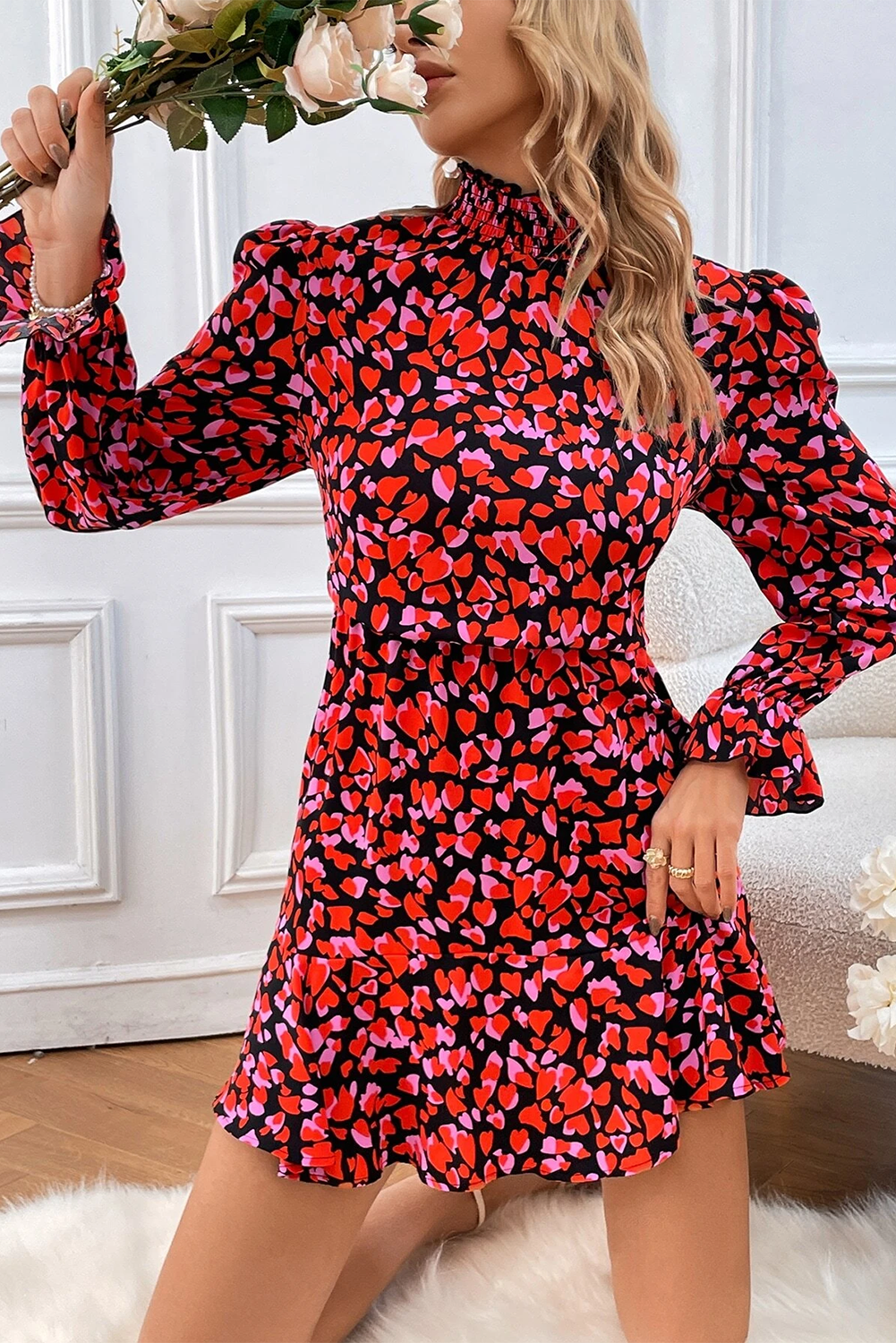 มินิเดรสแขนยาวพิมพ์ลายรูปหัวใจ
