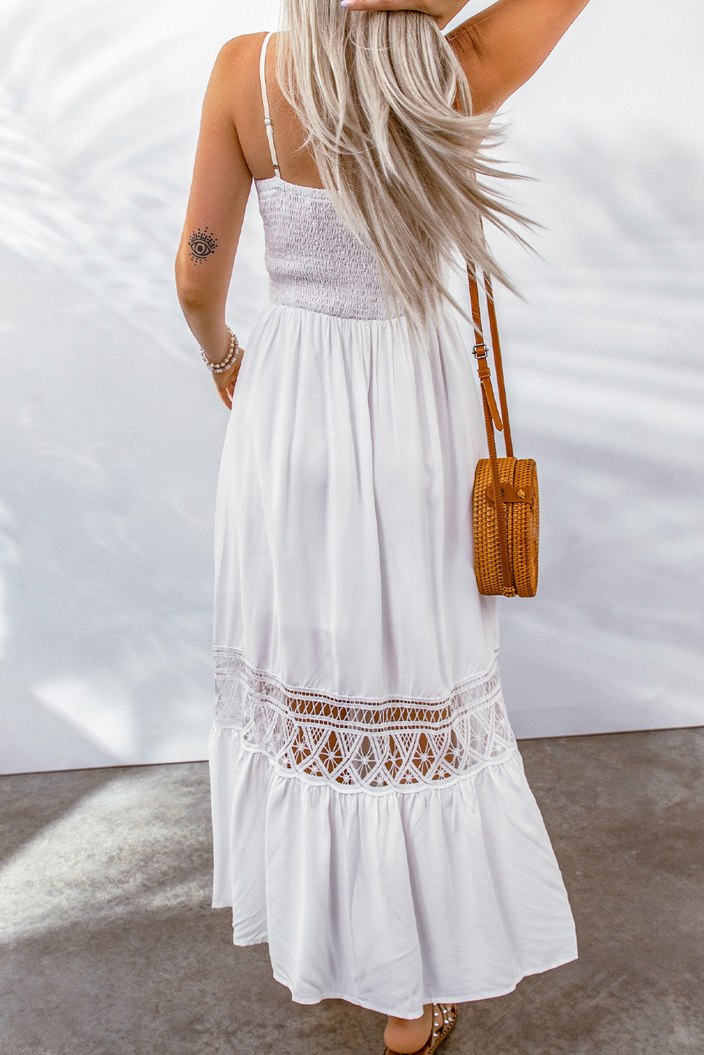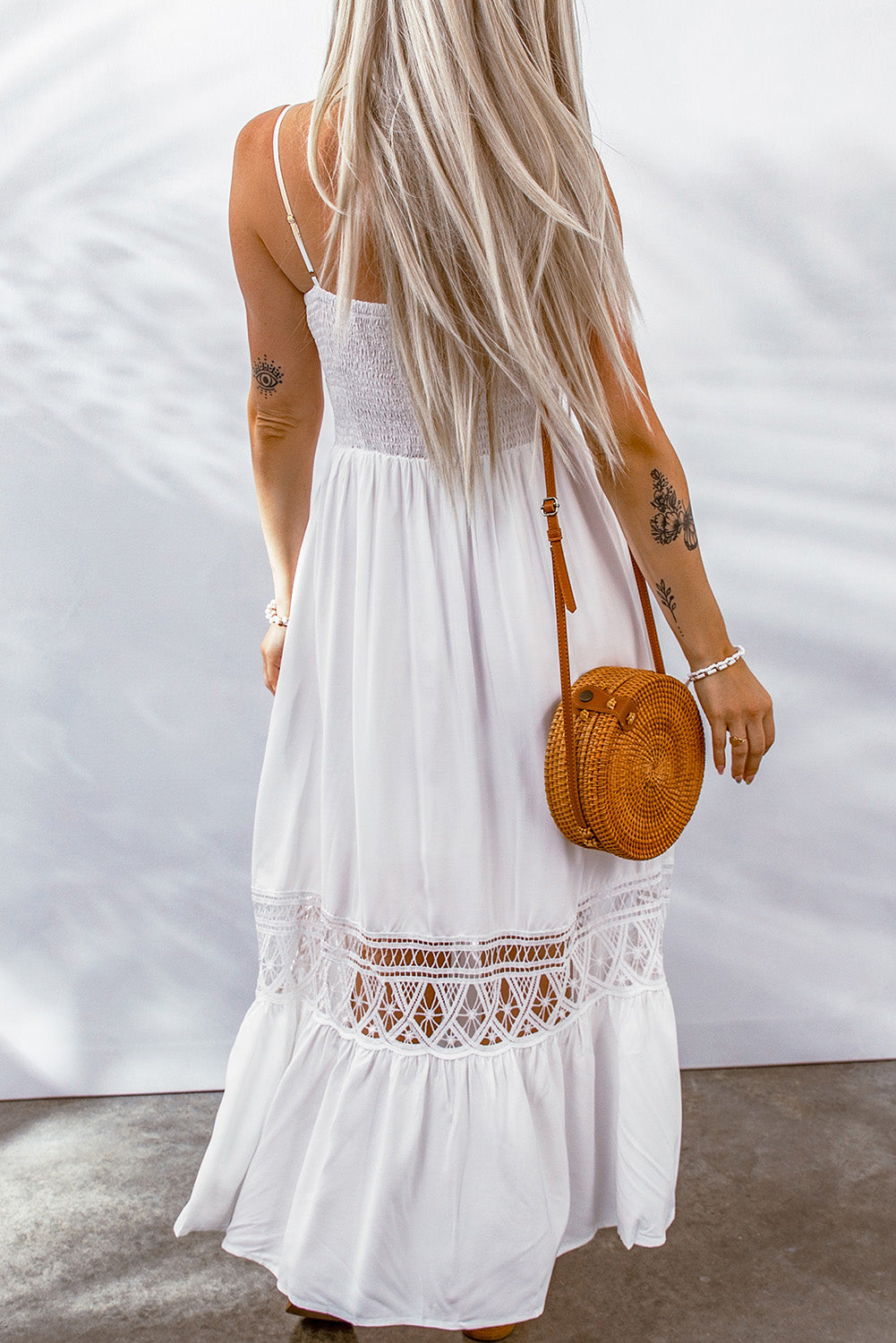 - ชุดแม็กซี่เดรสสายสปาเก็ตตี้ประดับลูกไม้แบบโบโฮ-เบ๊บ