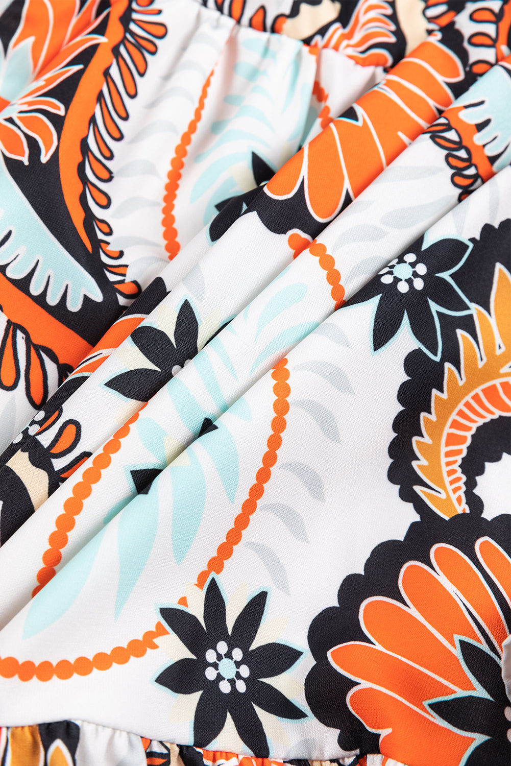 มินิเดรสแขนพัฟพิมพ์ลาย Boho Paisley ดอกไม้สีขาว