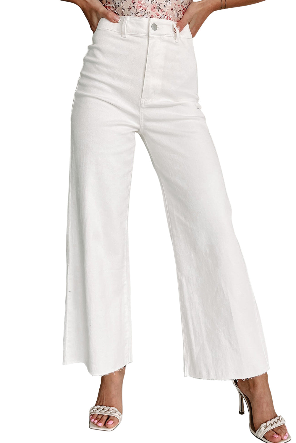 กางเกงยีนส์ Solid Raw Hem ขากว้างสีขาว