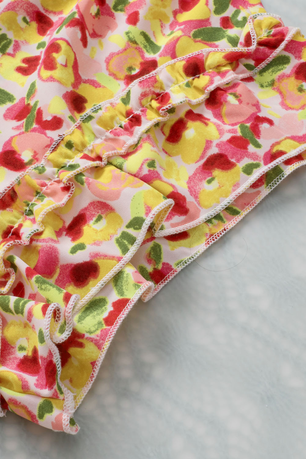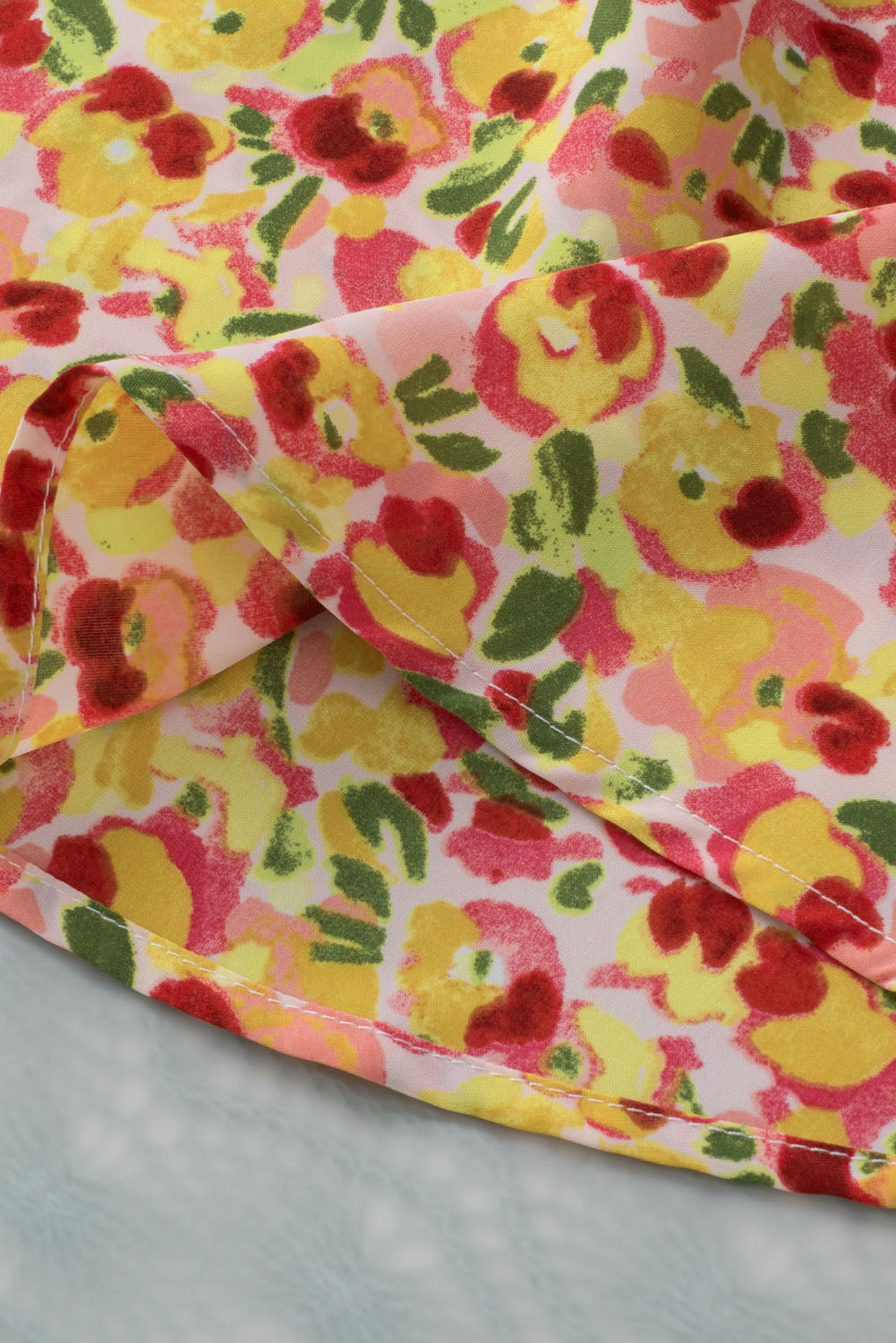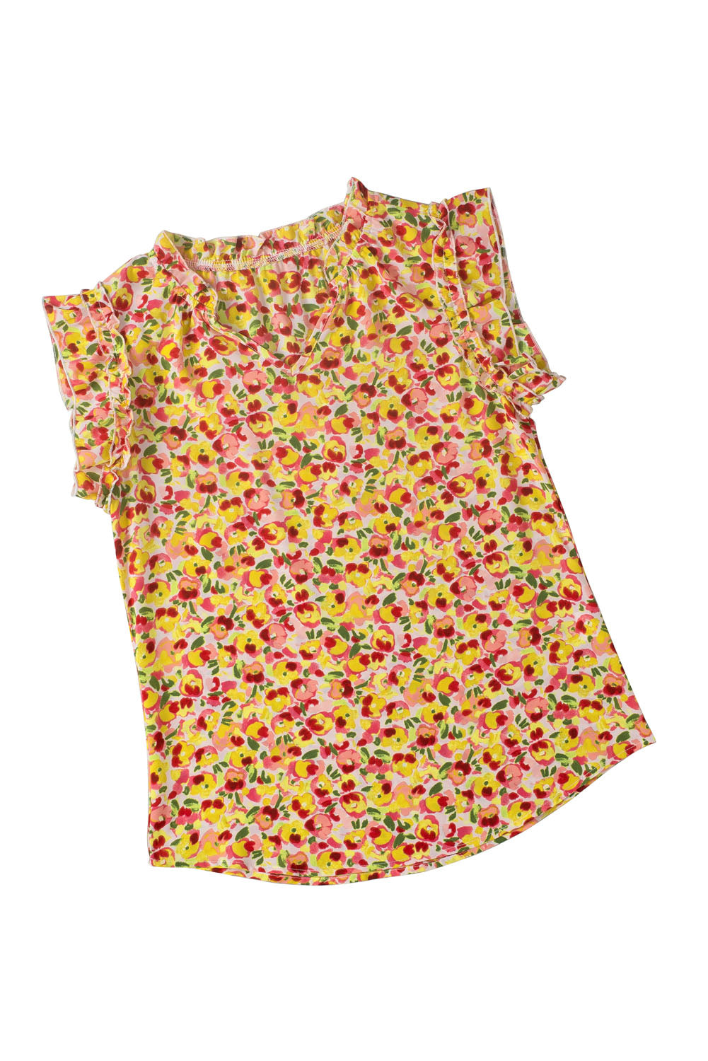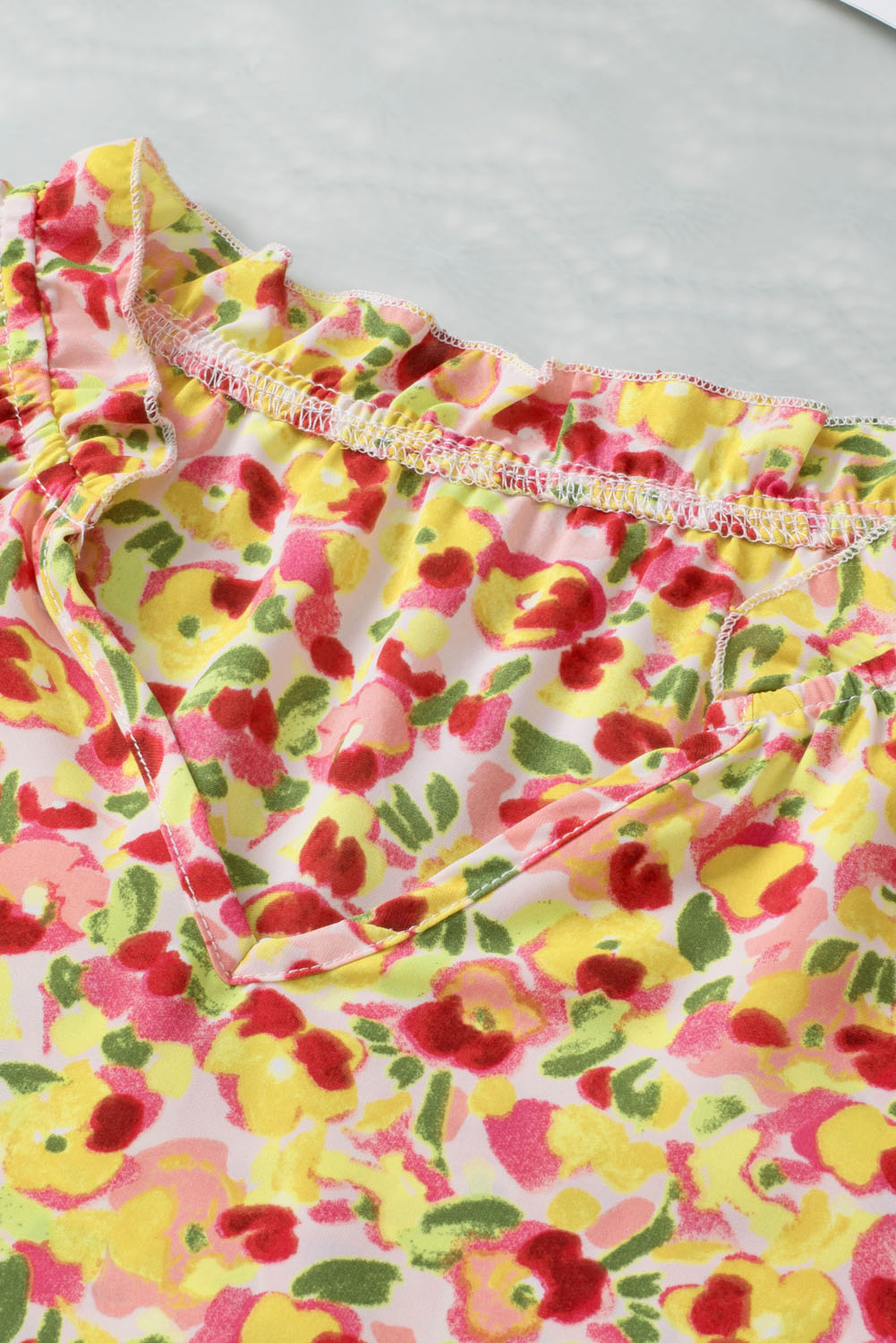 Yellow Floral Print Flutter Sleeve V Neck Tank Top